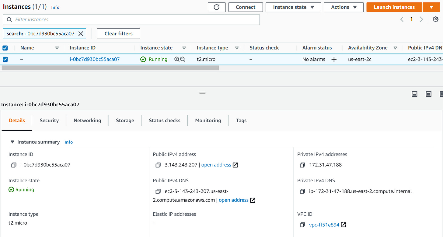 Tekrardan EC2 paneline geldiğimizde makinemizle ilgili bilgileri göreceğiz. Burada “Public IPv4 address“ olarak belirtilen alan bizim makinemizin dış IP’sini temsil eder ve yapacağımız bağlantılarda bu adresi kullanacağız.