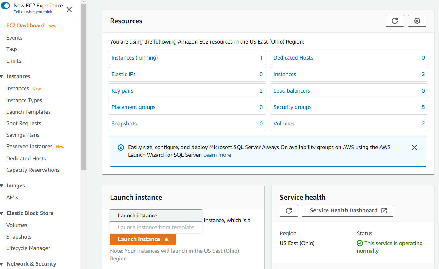 Öncelikle AWS’ye giriş yapmak için bir kullanıcı oluşturmanız gerekmekte. Kullanıcıyı oluşturup, AWS üzerinden giriş yapıp EC2 paneline gelip “Launch Instance” ile ilerleyelim.