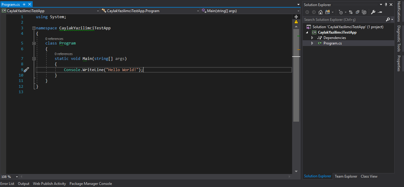 Visual Studio ile .net Core Console Uygulaması Oluşturmak