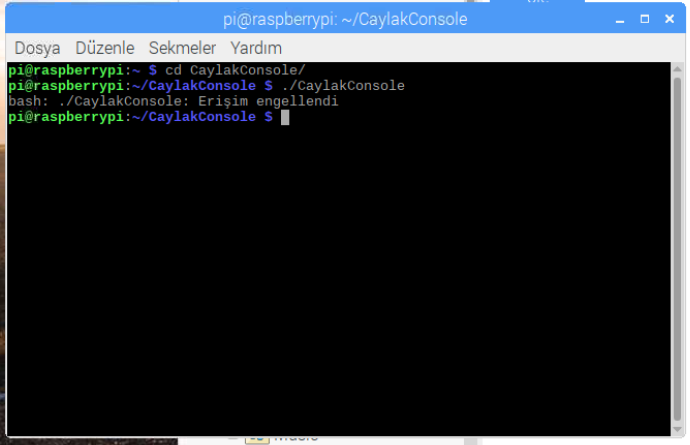 Şimdi uygulamamızı önceki basamakta kopyaladığımız “home/pi” dizinine gidelim.