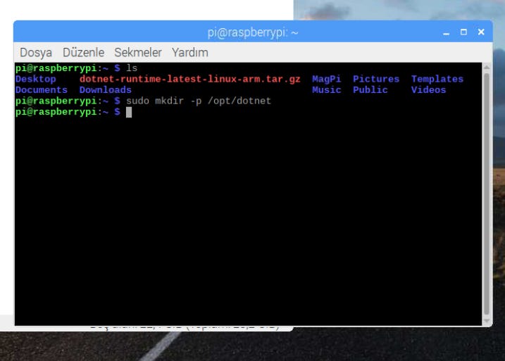 sudo ln -s /opt/dotnet/dotnet /usr/local/binBu işlemlerden sonra raspberry pi sistemimize .Net Core kurulacaktır. Kontrol etmek için