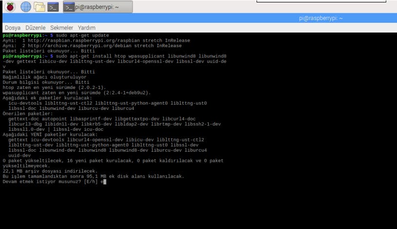 Raspberry pi üzerinde işlemlerimize terminal komutlarıyla devam edeceğiz.
