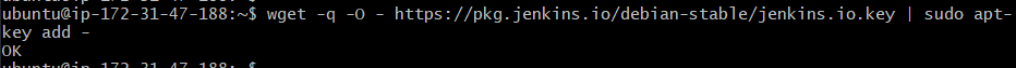 wget -q -O - https://pkg.jenkins.io/debian-stable/jenkins.io.key | sudo apt-key add -