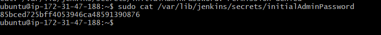 sudo cat /var/lib/jenkins/secrets/initialAdminPasswordYukarıdaki gibi bir şifre göreceksiniz. Bunu kopyalayıp browser üzerinde istediği alana yapıştıralım.