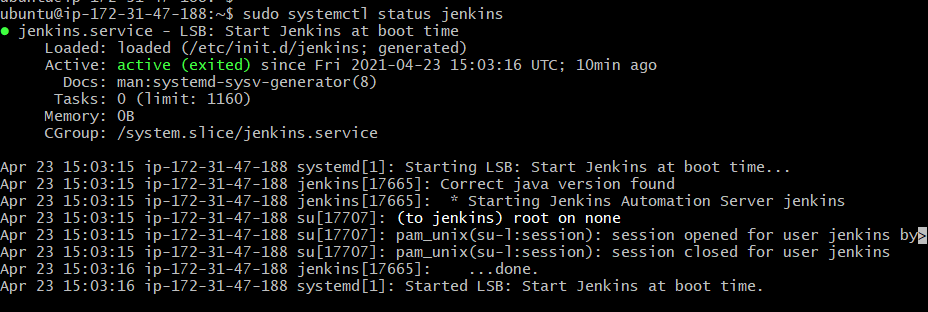 sudo systemctl status jenkins