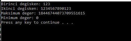 Console.WriteLine(”Minimum deger: “ + minUlongDegeri);